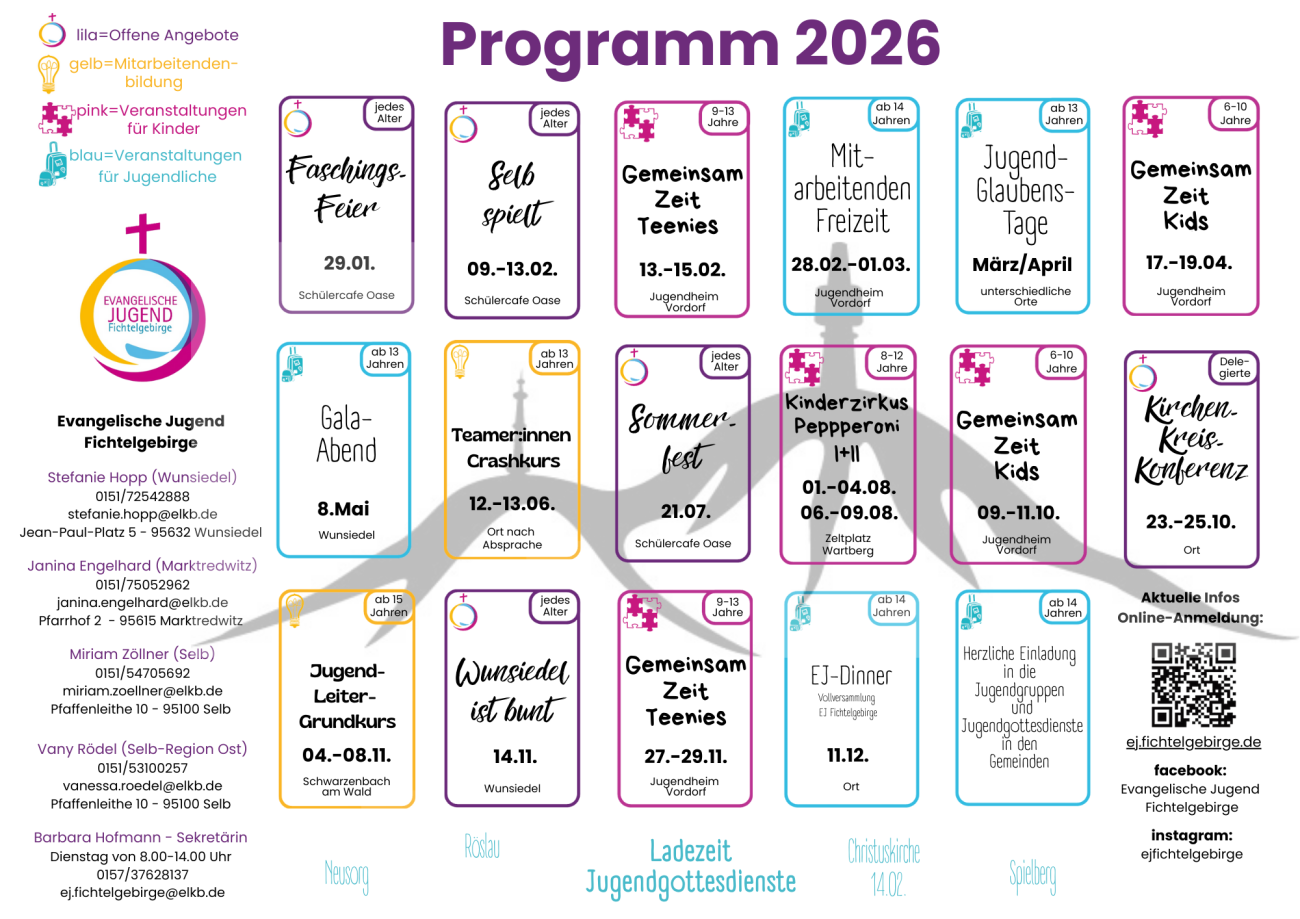 Auf dieser Seite siehst du, was die Gemeinde so vorhat und was die Evangelische Jugend Fichtelgebirge anbietet. Schau dich um und komm vorbei!