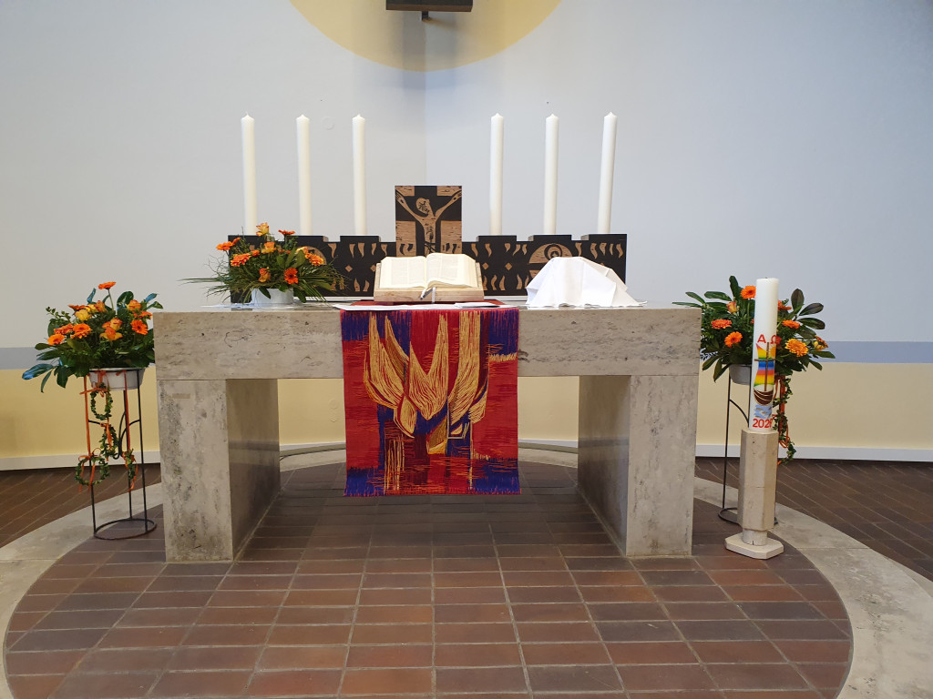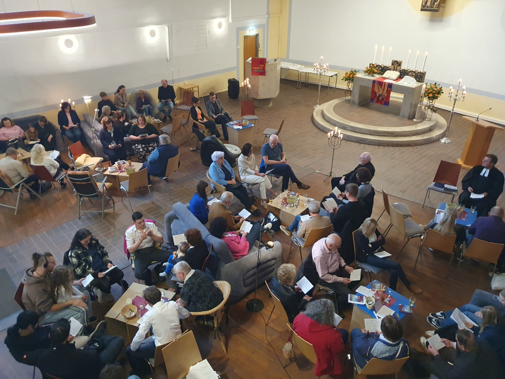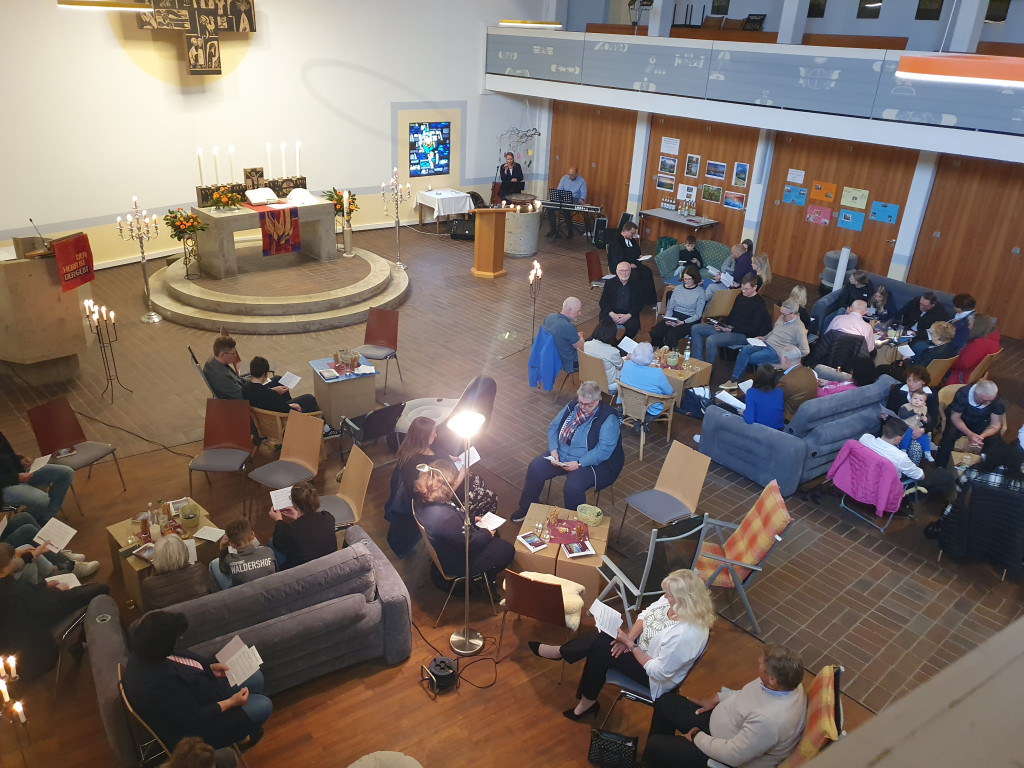 Das Wochenende wird in Erinnerung bleiben: bei den sieben Jugendlichen, die am 19. April konfirmiert wurden, bei ihren Familien und in unserer Gemeinde. Gerade die Konfibeichte am Samstag, den 18. April, war etwas ganz besonderes. Die Konfirmandinnen und Konfirmanden, die den Gottesdienst in Form und Inhalt selbst verantworteten, hatten sich für eine Wohnzimmerkirche entschieden. Und so war die Christuskirche voller Sofas und Sessel, Kerzenständern und Stehlampen, Couchtischen und Snacks, als gut 70 Menschen gemeinsam Gottesdienst feierten. Viele Gedanken hatten sich die Jugendlichen zum Thema "Vergebung und Versöhnung" gemacht - und mit klugen Fragen auch die Teilnehmenden miteinander ins Gespräch gebracht. In der Feuerschale auf dem Taufstein wurden Schuld und Last in Rauch aufgelöst und somit Gott anvertraut. Die kleine Band mit Katha Flögel und Gerhard Kießling sorgte für lockere Stimmung und an de Tischgruppen wurde gemeinsam Abendmahl unter Leitung von Pfarrer Johannes Herold gefeiert.
