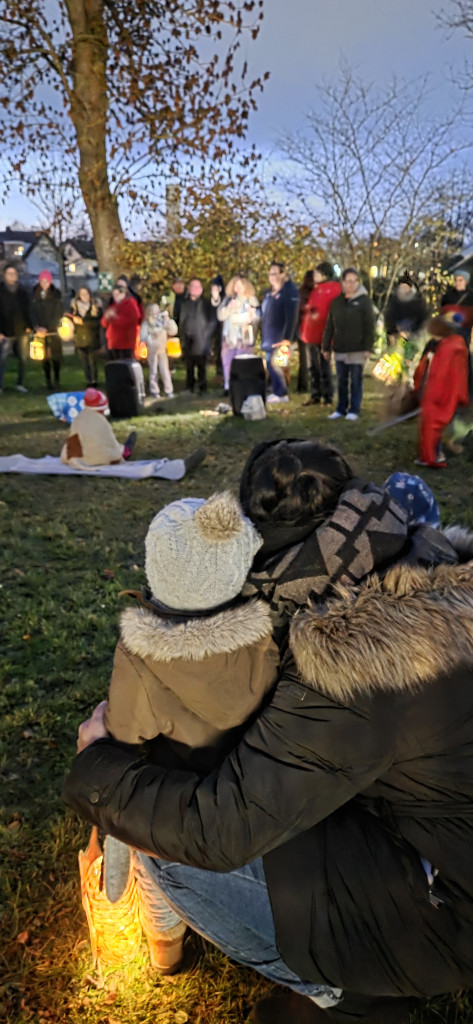 Zum Anschluss feierten alle in der Nikolaus-KiTa weiter, wo gemütlich am offenen Feuer Stockbrot gebacken wurde. Frische Waffeln, Wiener mit Brötchen von der Bäckerei Popp sowie warmer Kinderpunsch rundeten den Abend ab.
